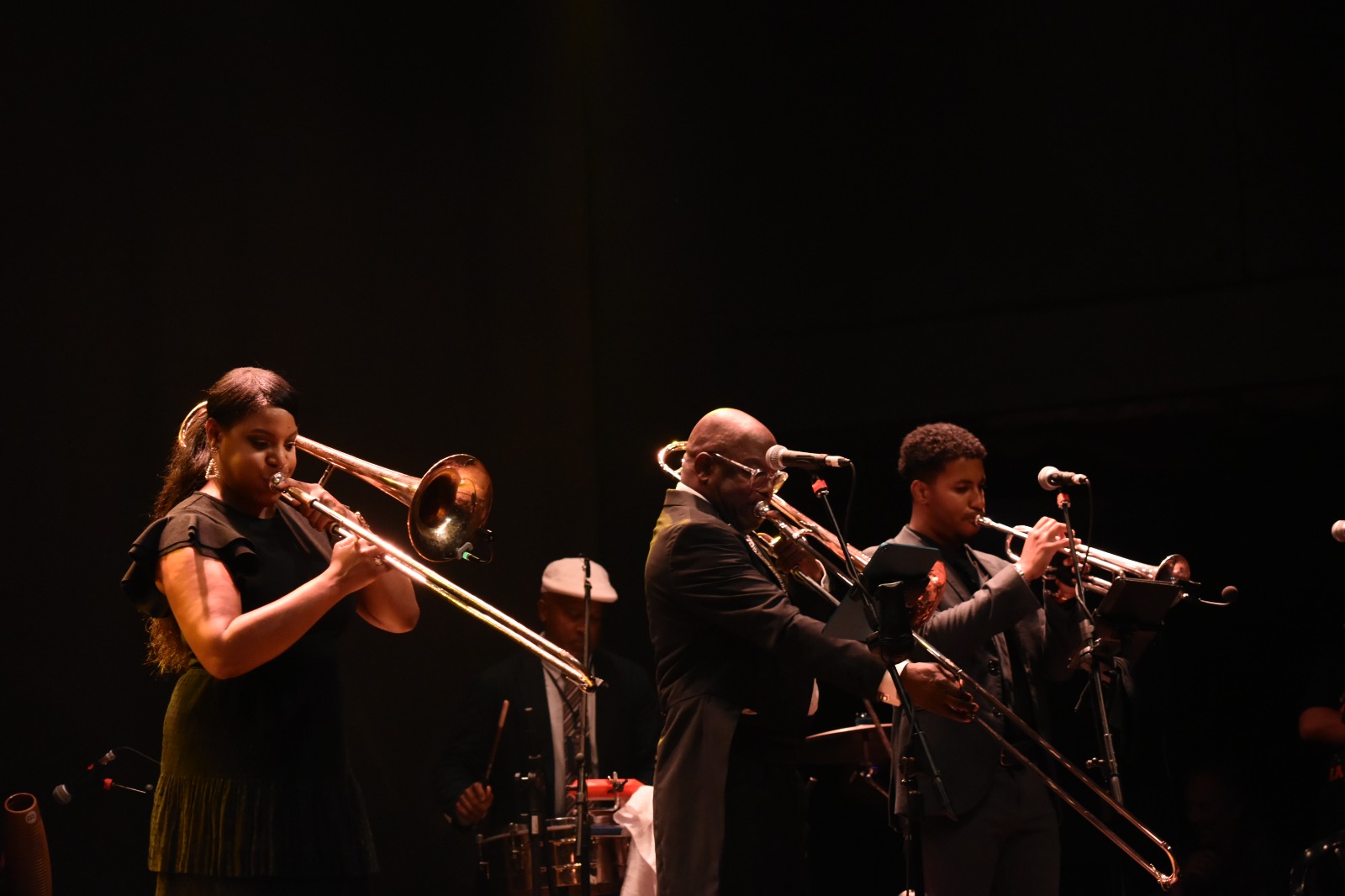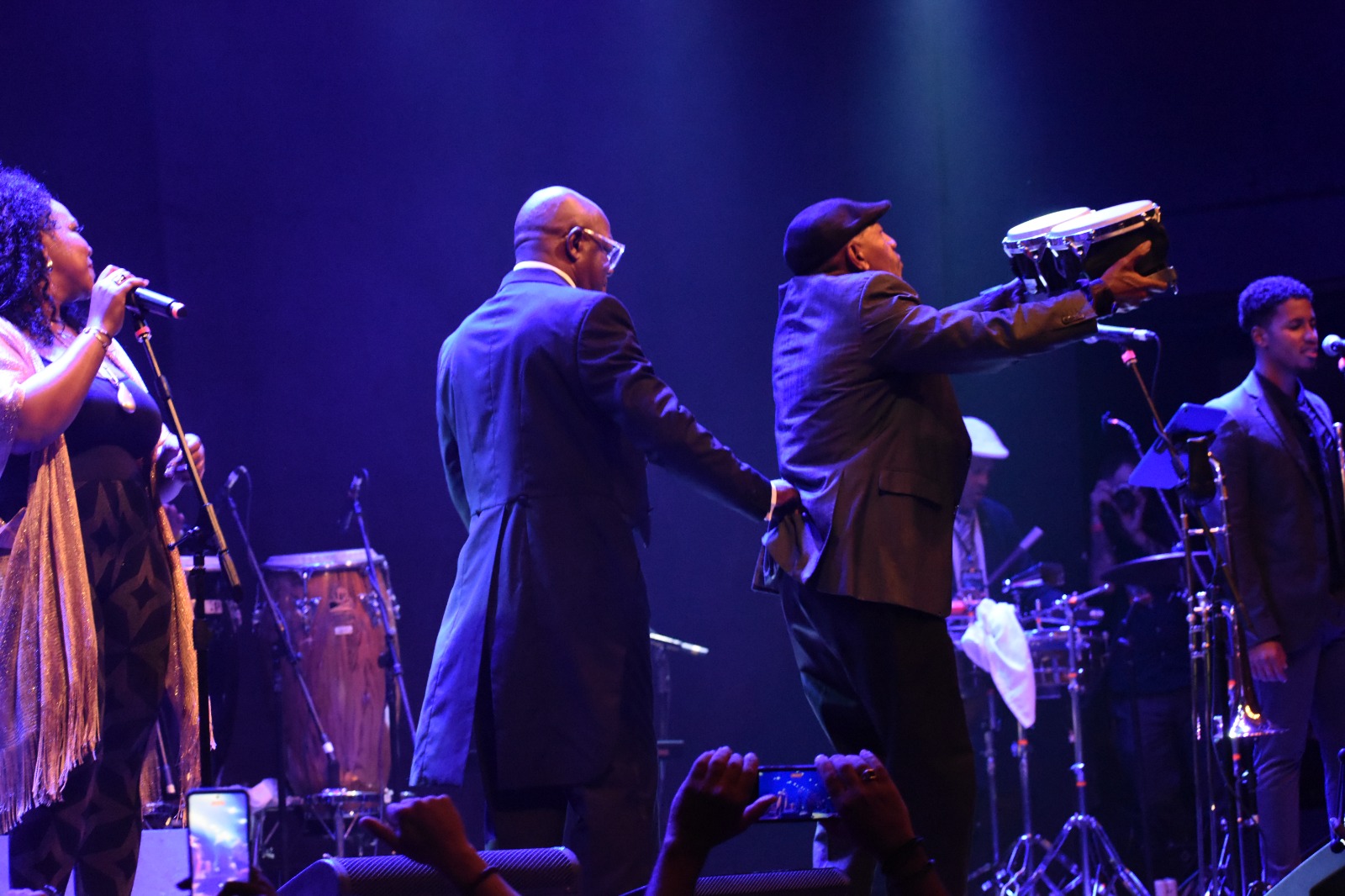 Com trajes elegantes e cheios de identidade, os músicos surgiram ao palco em ternos bem cortados, vestidos elegantes e boinas — respeitando a tradição visual dos salões cubanos.